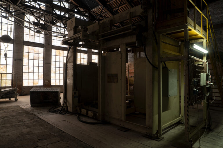 Si susseguono in quest’ambiente macchinari destinati a cadere in disuso. Nel secondo, grandi aspiratori, che non sono più collegati a nulla, pendono dal soffitto, senza occupazione ed inermi, vittime anche loro della spietata legge industriale. Si arriva poi ad un appartamento, che rimanda a quelli che occupavano i custodi o i proprietari della fabbrica, se si trattava di una dimensione familiare. L’atmosfera è degradante, gli interni dell’appartamento vengono violati nella loro intimità dal visitatore, che si trova in una situazione di disagio. Continuando il percorso si accede ad un terzo capannone industriale occupato da file di macchine da cucire, scarsamente illuminate. Ci si chiede dove siano finite le persone che le animavano e cosa staranno facendo oggi. Sono state sostituite? La produzione è stata delocalizzata altrove? Avranno trovato un’altra occupazione? Alle pareti, faldoni e registri di entrata e di uscita ci ricordano che qui un tempo era in atto la vita.