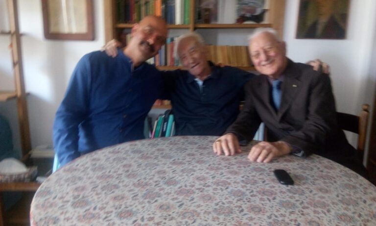 Da sinistra, Erkut Tokman. Franco Loi e Manrico Murzi, 2019 (la foto, sia pure sfocata, è di grande valore umano, artistico e simbolico)