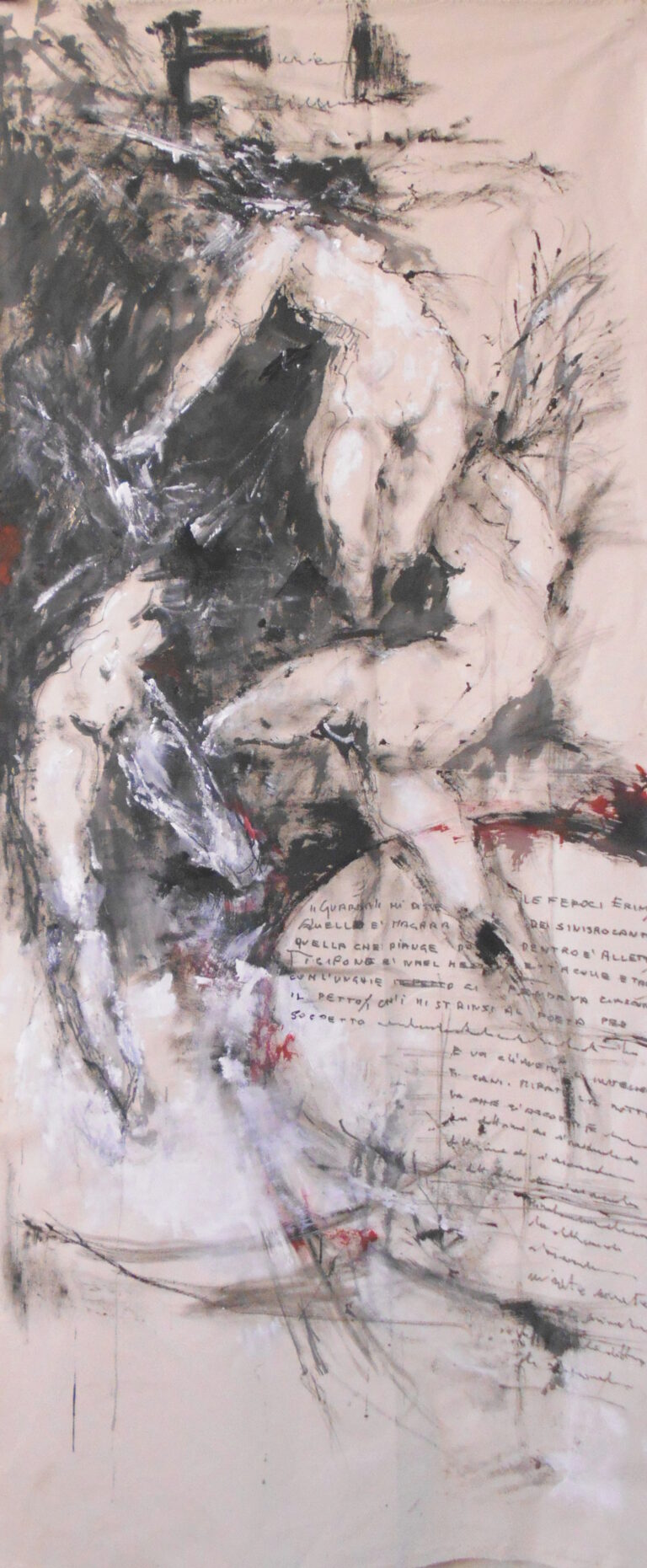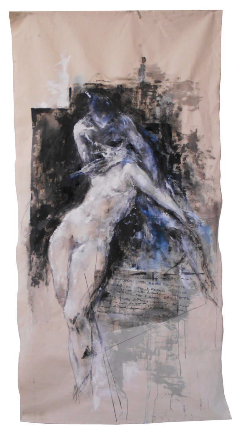 Paolo e Francesca, 2021, acrilico su tela libera non preparata, cm 170×78