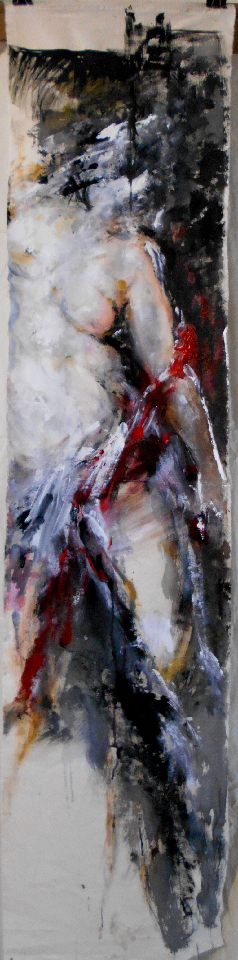 Erinni, 2021, acrilico su tela libera non preparata, cm 170×70