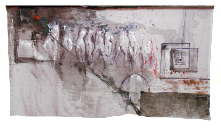 Allora, di notte, mi sono alzata, ho aperto l’armadio e ho iniziato a stracciare le lenzuola: il giorno dopo iniziai a dipingerle, per poi esporle tra il legno e il ferro alla Villa Reale di Monza, all’ultimo piano dove c’erano le stanze della servitù (e dopo la seconda guerra mondiale le sale di accoglienza dei fuggiaschi).