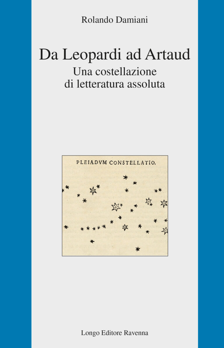 Esce in questi giorni il libro Da Leopardi ad Artaud. Una costellazione di letteratura assoluta, nei cui sedici capitoli Rolando Damiani interpreta particolari aspetti e opere di poeti e scrittori per i quali l’attività letteraria fu l’esperienza più alta di assolutezza, nel senso della conoscenza e della ricerca di verità sugli uomini e sul mondo. Pur diversi e distanti si può paragonarli nella visuale dell’osservatore a una costellazione di “stelle”, che hanno i nomi di Baudelaire e Tolstoj, di Irène Némirovsky e Simone Weil, o quelli italiani come d’Annunzio e Comisso, Parise o Ceronetti o Calasso. Sono preceduti nel titolo dai nomi di Leopardi e Artaud, scelti come punti d’orientamento nello spazio, specialmente noti all’autore per i lunghi studi svolti su di essi, e anche in questo libro testimoniati.