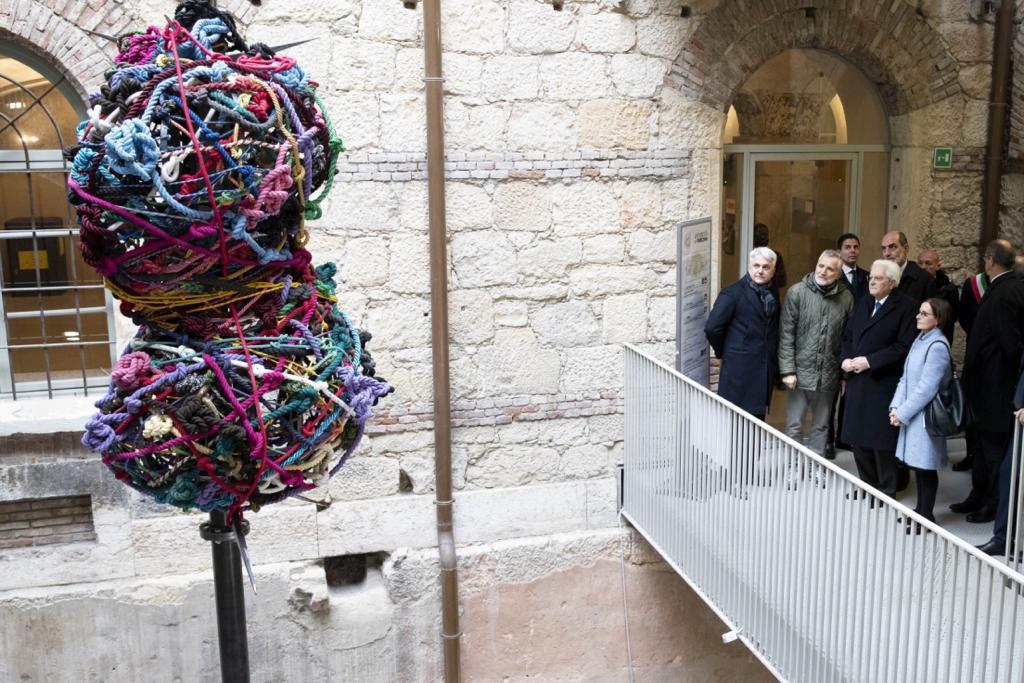 Egualmente per la lana che sembra alludere nell’immaginario a quegli incantevoli, morbidi gomitoli colorati, dipanati da mani esperte, che sono parte dell’esperienza famigliare e materna delle persone come me e Fabrizio, quando le mamme ancora creavano da sé i maglioni o le sciarpe per il nostro inverno, quegli stessi fili di lana che formano le robuste trame delle corde colorate e intrecciate dell’installazione Rosario delle assenze nella sede dell’Università di Verona nel 2019, presenti anche nella composizione delle sei Teche W&W realizzate tra il 2020 e il 2022.