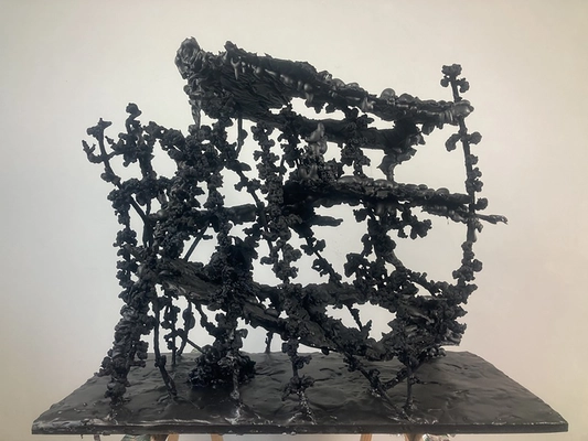 Se analizziamo come queste opere sono materialmente realizzate, con lana, metallo, argilla, legno, poliuretano, pittura, colpisce la fatica della costruzione, la sapienza del fare. Nulla è casuale in queste forme che sembrano generarsi per forza autonoma. Il pensiero dell’artista con questo progetto ripensa i padri e i maestri, riflette sui debiti e sui crediti. Rilegge l’intera esperienza dell’atelier, del luogo in cui l’arte forma il pensiero, dove l’opera produce crisi con il suo stesso farsi.