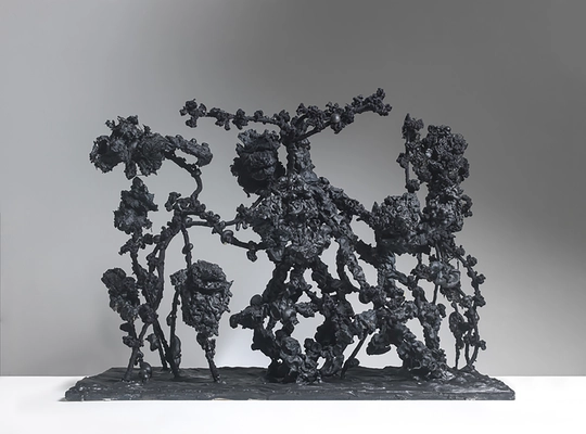 Il riferimento primario a Kubin nella serie di queste opere riapre la stanza del seminario, delle lezioni di Cacciari e di Franck (“con una forza invincibile si viene attratti dalla spaventosa atmosfera del crudele vuoto che si sprigiona dai disegni di Kubin, che, tra questi veggenti del declino, questi poeti al tramonto, ha un posto in primo piano”, 1983-84, aula IUAV ai Tolentini), nonché le mie, sulla comprensione dell’intera complessità dell’Espressionismo, che nutrì il pensiero artistico di Vedova da cui oggi si allontana Gazzarri nella sua più pura invenzione: priva di uno “stile” la sua opera segna la conquista di una originalità primigenia, che supera e si vendica di accademie, scuole, maestri e di padri. Dobbiamo aver presente cosa ha rappresentato Kubin nel tempo della finis Austriae per capire il senso della scultura di Gazzarri a lui dedicata. La famiglia di Kubin è Goya, Füssli, Böcklin, Klinger, Ensor, Munch e l’Hoffmann di Die Elixiere des Teufels (Gli elisir del diavolo)! Nella oscura contorsione materica con fantasmi di Kubin, Die Trauer 1903 tutte queste voci risuonano.