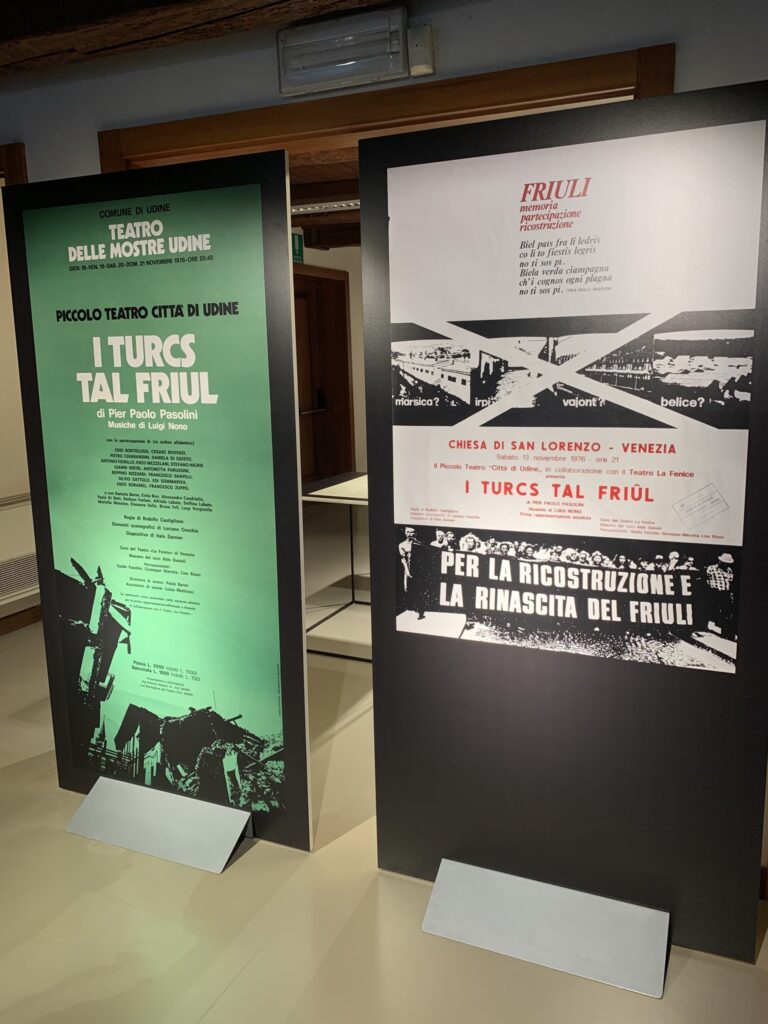 Ne riprende in cronaca l’excursus dei vari eventi un testo di Arianna Niero che introduce ad alcuni documenti e contributi preziosi di questa edizione, in primis il testo di Roberto Calabretto curatore di un prezioso allestimento che ha segnato la ri-scoperta in epoca odierna del prezioso contributo che Luigi Nono dette per l’allestimento (la cui partitura era andata in fiamme nel rogo del Teatro La Fenice del 1996), nel pieno dell’emergenza tellurica del Friuli del 1976, dell’allestimento a Venezia de I Turcs tal Friúl, opera giovanile di Pier Paolo Pasolini. Un evento di Teatro di Azione di piena Emergenza, particolarmente caro a Nono (vedi Intolleranza 1960) che venne allestito il 13 novembre del 1976 a Venezia dal Piccolo Teatro Città di Udine, in collaborazione con il Teatro La Fenice, in quello spazio dall’annuncio profetico di San Lorenzo che vedrà pochi anni dopo, nell’autunno 1984, l’approdo e il sigillo del Prometeo Tragedia dell’ascolto.