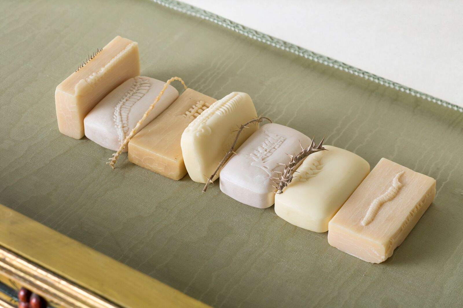 In questa esperienza estetica ed esistenziale la fragilità è un elemento ricorrente, un elemento tanto simbolico quanto formale, come il meraviglioso cestino di porcellana finissima che, poggiato sul raso di una sedia al cospetto della Presentazione del Bellini, inaugura uno scenario metafisico; come il rotolo smagliante di carta velina, nastro di oltre quaranta metri che diventa l’incerto destino di un ricamo infinito, estenuante esercizio di concentrazione e costanza (2001-2010), esile misura della precarietà umana. Fragile è la natura umana perché destinata a percorrere e disegnare sempre gli stessi profili, dove elementi come il genio, la libertà e la fortuna sembrano perdersi e scolorare nella infinita ripetizione delle combinazioni che tutto semplifica e riduce. Angela Vettese ha spiegato come questa reiterazione formale richieda una straordinaria disciplina fisica e mentale e sottenda una posizione etica. Ripetendo elementi e figure oltre ogni illusione stilistica, l’artista cesella nella carne della storia; sotto il suo bisturi le antiche pareti rivelano strati pittorici dimenticati, i rami si tramutano in fregi, i reticoli linfatici rivelano modelli che hanno ispirato il liberty e gli antichi erbari. In questa prospettiva il dialogo con le collezioni della casa-museo diventa un momento di riflessione sul senso della conservazione, sul valore di un patrimonio che – sembra dirci l’artista – segue l’esile destino circolare di ogni esistenza e può essere ritrovato solo nell’esercizio quotidiano, quando l’arte è contemporanea all’arte. Conservare il futuro – il progetto che da anni Chiara Bertola prosegue nelle stanze della Fondazione – invita proprio a questa riflessione. La sovrapposizione dell’archivio famigliare dei Querini con quello dell’artista offre la prima profonda risposta, la necessità di ritracciare quella continuità naturale tra il loro e il nostro tempo, per dar valore ai gesti che, secoli orsono, hanno prodotto e raccolto quegli arredi e quelle immagini. Ecco che misteriose saponette incise trovano posto nelle vetrine del museo quali antichi reperti fossili, e i disegni dell’artista suggeriscono che di simili avrebbe potuto regalarne un botanico settecentesco al conte Querini.