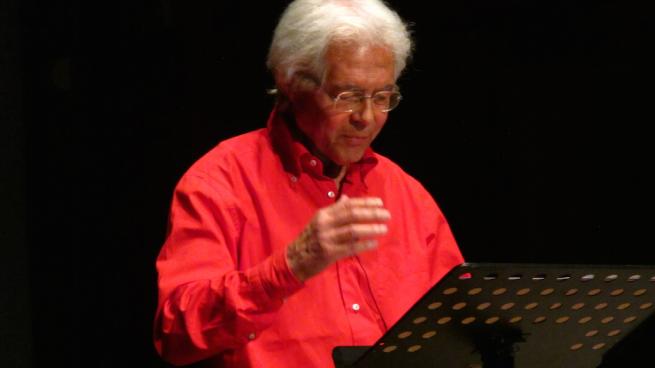 Giuliano Scabia legge Albero stella di poeti rari, foto di Maurizio Conca (Doppiozero)