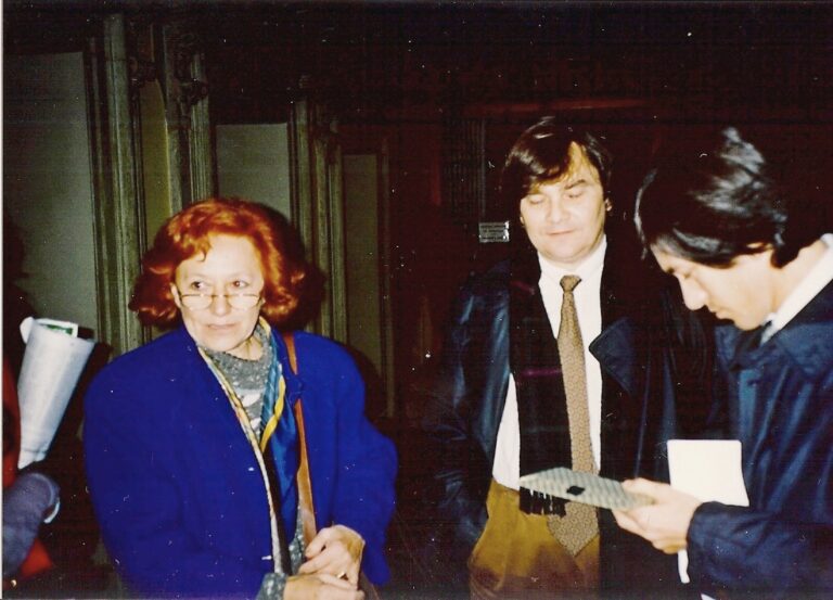 Rădulescu con Aldo Brizzi e la madre Giuliana nel giorno della discussione della tesi di laurea DAMS, Bologna 1990