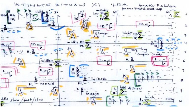 Anche Horatiu Rădulescu ha avuto un ruolo determinante. Tu lo hai frequentato partecipando alle complesse esecuzioni delle sue musiche, ma anche per preparare la tesi di laurea sulla sua musica, tesi che hai preparato con Aldo Clementi. Rădulescu ti introdusse ai segreti dell’immaginario sonoro, visto attraverso la lente dei fenomeni acustici insiti nel suono stesso, attraverso il gesto rituale. Raccontaci un po’ com’era Rădulescu e cosa hai imparato dal lui.