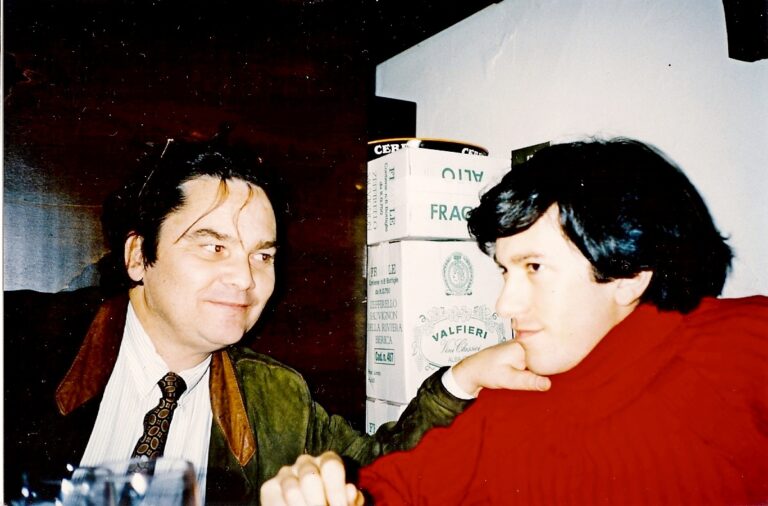 Horaţiu Rădulescu con Aldo Brizzi a Bologna nel 1990, dopo la discussione della tesi
