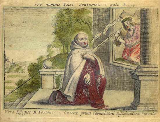 A 21 anni entra nell’Ordine del Carmelo con il nome di Giovanni della Croce. Prima di essere ordinato sacerdote, in un momento di ripensamento vocazionale e già quasi deciso a passare alla forma di vita certosina, incontra per la prima volta Teresa di Gesù (Santa Teresa d’Avila), che aveva cominciato a riformare i Carmeli femminili. Giovanni accetta di condividere l’ideale e il destino di lei e dare inizio ai primi carmelitani riformati. Cinque anni dopo, nel 1568, si avrà l’inaugurazione ufficiale del primo convento di quelli che verranno chiamati “carmelitani scalzi”.