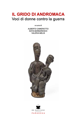 La copertina del libro Il grido di Andromaca. Voci di donne contro la guerra, a c. di A. Camerotto, K. Barbaresco, V. Melis (De Bastiani Editore, Vittorio Veneto, 2022). In copertina: La madre dell’ucciso, bronzetto nuragico da Urzulei (X-VII sec. a.C.) su concessione MiC-Museo Archeologico Nazionale di Cagliari