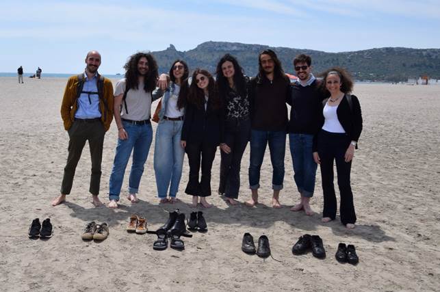 In primo piano una parte del gruppo di ricerca Aletheia Ca’ Foscari sulla spiaggia del Poetto a Cagliari.