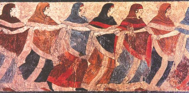 Fresco of dancing Peucetian women from the Tomb of the Dancers in the Corso Cotugno necropolis of Ruvo di Puglia, Le Musée absolu, Phaidon – Ph. Yann Forget