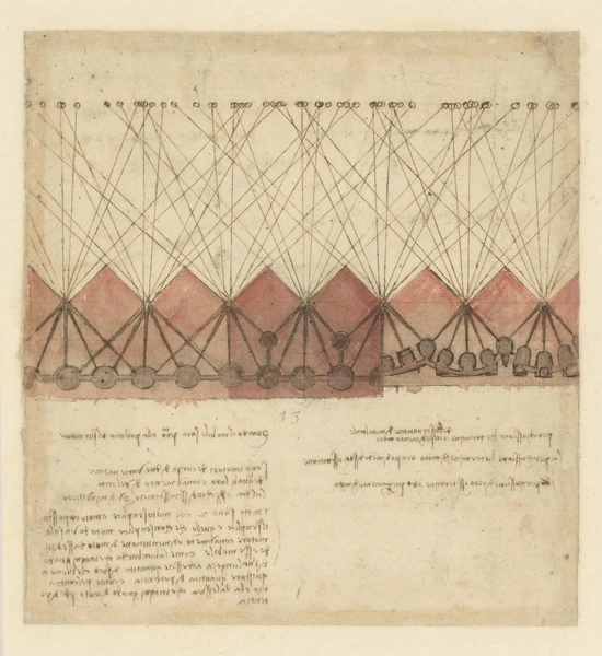 2. Leonardo da Vinci, Studio sulla riflessione della luce, 1513 circa, Codice Atlantico, foglio 672 verso. Veneranda Biblioteca Ambrosiana di Milano ©Veneranda Biblioteca Ambrosiana/ Mondadori Portfolio/ Metis e Mida Informatica