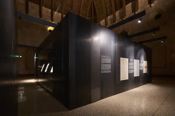 Nella monumentale architettura, l’intensa penombra annulla i confini dello spazio, dilegua i volumi, esalta le percezioni fra l’altezza e le visioni della mostra Tre capolavori a Vicenza. Leonardo da Vinci, Jacopo Bassano, Gianandrea Gazzola che diventa, nel cammino, immersiva.