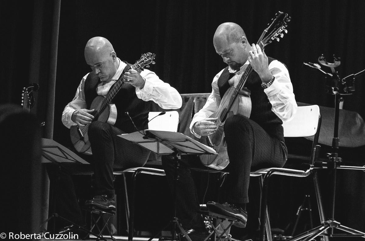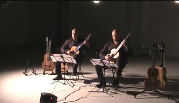 Ed ecco affacciarsi, a questo punto, il duo di chitarre, dapprima timidamente – come da partitura sonora – riversandosi lentamente e quasi magicamente sul palcoscenico poetico. La musica scorre in delicati effluvi sonori: le corde vibrano e fanno tutt’uno con l’eco dei versi sospesi nell’aria, il timbro è luminoso e raffinato, impreziosito dal calore delle vecchie chitarre d’epoca, la delicata partitura dispone le antiche melodie con una ricchezza timbrica e figurale fantasmagorica. Si assiste qua e là ad una spiritualizzazione del linguaggio musicale offerta dalla suggestione poetica dell’evento e da un’interpretazione personale di assoluto livello; nessun accenno a lusinghe effettistiche, ma molte occasioni virtuosistiche come si addice alle composizioni dei due autori presentati: l’italiano Mauro Giuliani (1781-1829)3 e il croato Ivan Padovec (1800 -1873)4 autentici innovatori del linguaggio musicale dell’epoca, il primo più del secondo, ma tant’è.
