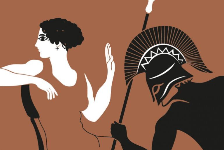 Spetta ai maschi, ai guerrieri occuparsi di tutto questo: offrire le vittime agli dei e trarre vaticini, quando si cimentano contro i nemici. Compito tuo è invece fare silenzio e startene a casa! (Traduzione di Monica Centanni)
