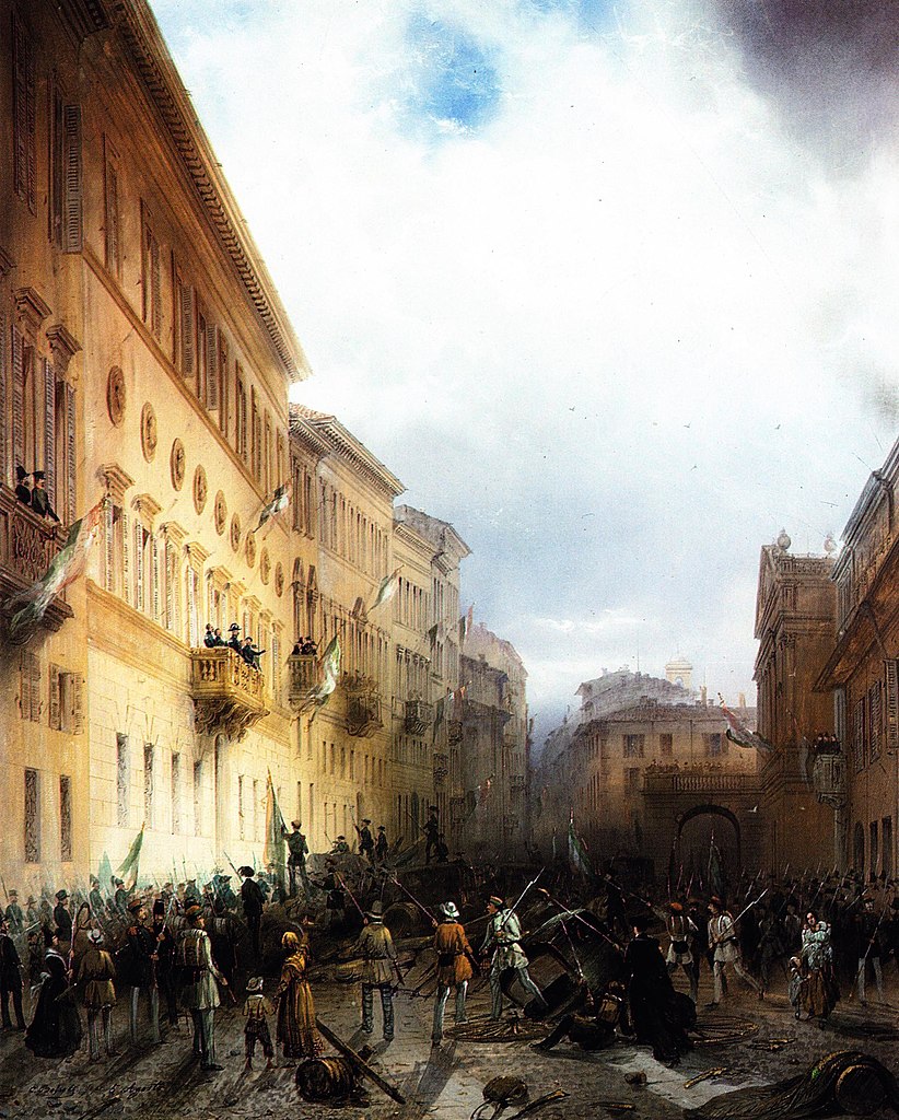 Girolamo Induno, La Trasteverina uccisa da una bomba, 1850, olio su tela, 114,5×158 cm, Roma, Galleria Nazionale d’Arte Moderna