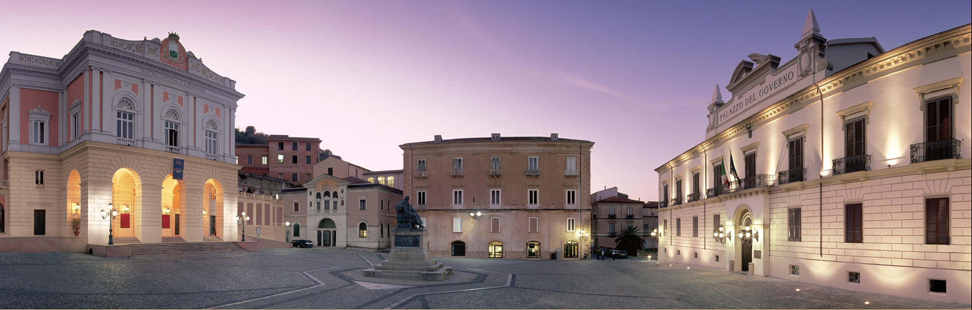 piazza-XV-marzo.jpg Cosenza_Palazzo della Provincia_Teatro Rendano con monumento a Bernardino Telesio