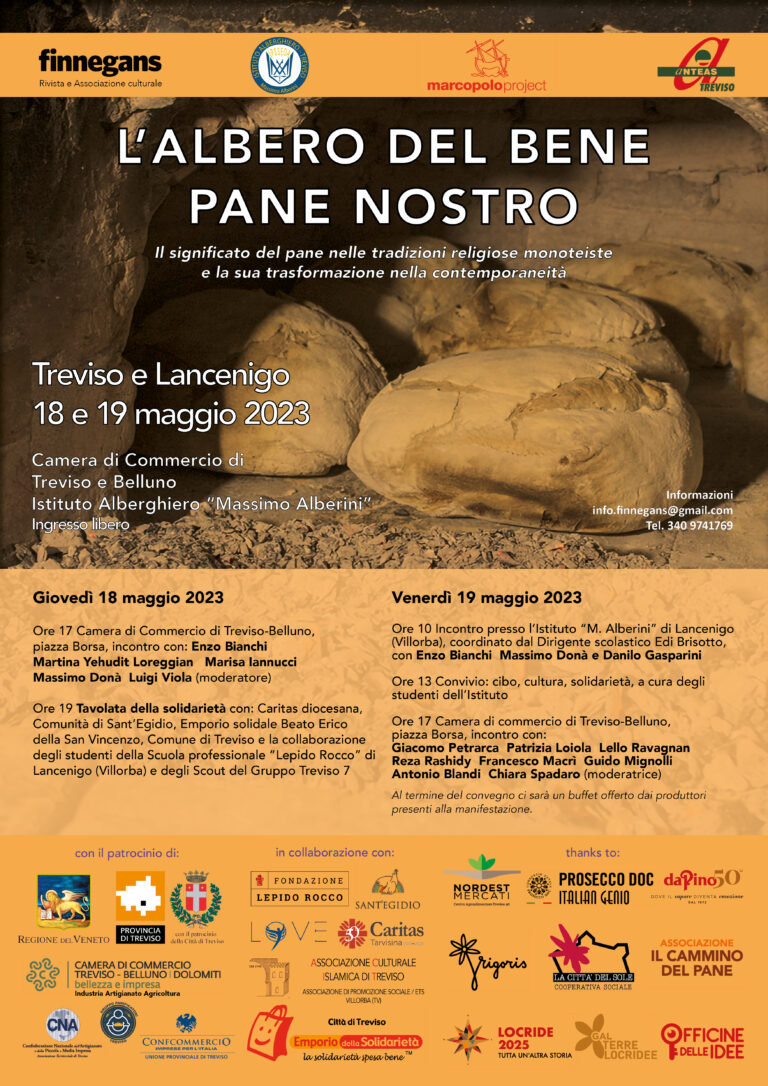 I due convegni, affiancati da un incontro con gli studenti dell’Istituto Alberghiero “M. Alberini” di Lancenigo da parte di tre personalità di spicco del mondo religioso, filosofico e storico-alimentare – Enzo Bianchi, Massimo Donà e Danilo Gasparini – costituiranno due momenti distinti quanto convergenti: quello di giovedì 18 a carattere interreligioso – un percorso ermeneutico e speculativo, che connette interpretazioni e riflessioni esistenziali in una “fusione di orizzonti” che la nostra rivista e associazione coltiva fin dalla nascita – e quello di venerdì 19 caratterizzato da una declinazione di natura interculturale, indagando il pane e il cibo nell’essenza e nella visione storico-contemporanea e la sua ‘ricaduta’ a livello sociale e culturale.
