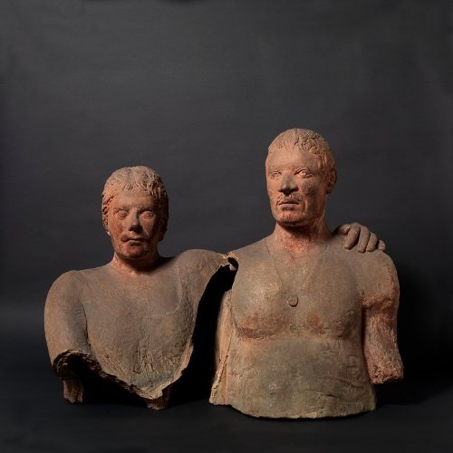 In mostra nella primissima sala – quella dove ci sono i ritratti – c’è una testa italica esposta insieme a due sculture di Marino Marini. Questa scelta, ad esempio, l’abbiamo fatta perché sappiamo molto bene, grazie alle primissime recensioni su Marino Marini – quelle della fine degli anni ’20, prima che lui andasse a Milano chiamato da Arturo Martini – che i critici del tempo in quelle sue prime opere vedevano il ricordo di sculture italiche, di sculture arcaiche, di sculture etrusche e romane. Sappiamo poi che in quel periodo c’era in corso un dibattito molto denso e molto importante sul ruolo che la civiltà antica aveva nell’arte italiana. Quindi, è plausibile supporre che Marino Marini, allora studente all’Accademia di Belle Arti di Firenze, conoscesse molto bene i calchi che lì erano conservati; che vivesse in questo clima culturale e leggesse dei libri a riguardo; che andasse al Museo Archeologico di Firenze.