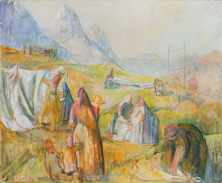 I disegni di formazione e le prime prove a pastello di Alis Levi nascono sulla scia dei maestri francesi, ma ben presto lasciano spazio a innovazioni di matrice capesarina, vicine a Gino Rossi e a Garbari. Alis si affida prevalentemente all’acquarello: i piccoli paesaggi pittoreschi sono pieni di luce, incastonati in ombre scure e animati dal gioco dei pastelli che crea densità e asperità accentuandone i toni e esaltandone il valore cromatico. Antonietta Raphaël si esprime per intarsi fiabeschi, quasi barbarici, riempie le tele di pettini, di pelli di leopardo, di tastiere di piano, di chitarre. Mescola magia e cabala con potenza inaudita, non ha mai dubbi sul suo valore e non ha bisogno di consensi per continuare, o cambiare registro produttivo: a un certo punto lascia la pittura e comincia a scolpire. Stessa energia, stessa esuberanza, stessa imprevedibile emotività. Un raffinato quanto sapiente sfruttamento del colore sono la forza della personalità artistica di Eva Fischer che tesse architetture d’incanto, siano esse ricche di figure, case, barche, biciclette. L’eleganza del segno, lieve e calibrato, contorna forme fantastiche dense di luce, rette da linee impercettibili e da colori che si sommano gli uni sugli altri. Dilaga il colore in liquide trasparenze, accese da lampi improvvisi, a volte caldi, spesso cristallini. La materia è trasfigurata: è luce che da fisica si fa spirituale.