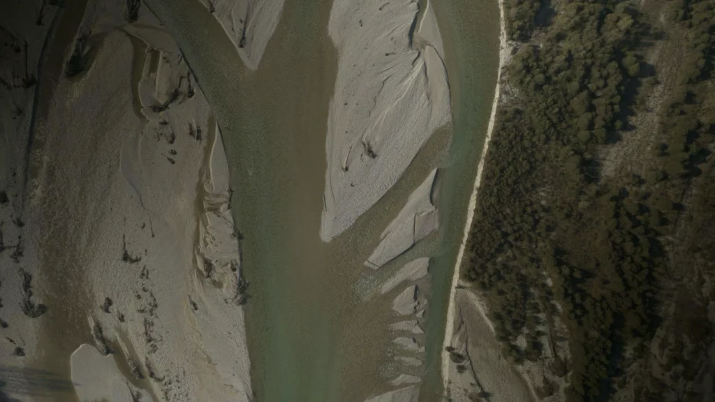In un momento in cui l’acqua diventa preziosa, Paolini riassume il senso di Mar de Molada come una maniera di raccontare ciò che sta in superficie (il visibile, il conosciuto) e ciò che circola sotto. Questo duplice registro è riscontrabile anche nel documentario, nelle ampie inquadrature a piombo sui fiumi e nei morbidi movimenti aerei di cui si parlava all’inizio di questo saggio. In altri lavori Segato ha evitato l’uso dei droni per non alimentare un certo abuso dell’uso del mezzo, che ormai vediamo ovunque sia nel cinema che in televisione, ma qui è anche vero che restituire alcuni ragionamenti fatti sulla cartina, sull’identificazione con la mappa, su questa idea del fiume come albero o anche sull’idroelettrico, fornisce una geografia all’immagine aerea visivamente interessante.