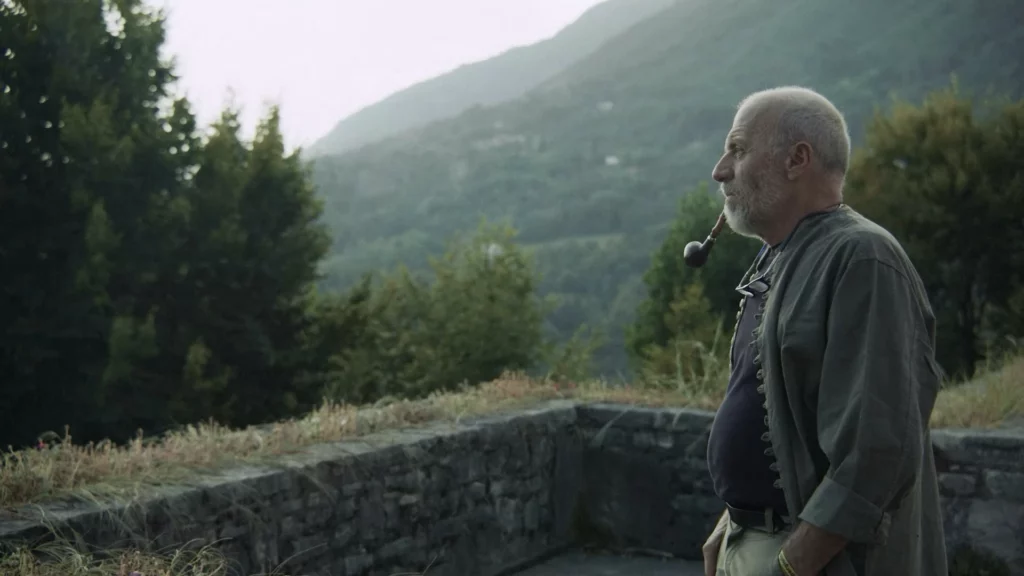In un’inquadratura significativa, durante una delle tappe, all’improvviso l’immancabile cartellone con il fiume-albero vola via dal palco, a ricordarci che la montagna non è del tutto e non sempre un ambiente ospitale. A livello logistico, la troupe minima che realizza le riprese si muove agilmente, spostandosi con la carovana e seguendo ciò che avviene in ogni allestimento. La leggerezza dell’attrezzatura consente di rimanere nello stesso luogo durante la preparazione e durante gli spettacoli stessi, in uno spazio dove spesso succedono diverse cose simultaneamente. Si ha quindi la possibilità di coglierne l’andamento, la parabola, di capire in quale momento e cosa filmare. In post-produzione si deve poi riuscire a trovare la chiave per legare questi elementi e restituire allo spettatore quella contemporaneità. Più ci sono difficoltà logistiche (il temporale, il vento, ecc.), più questi accadimenti sono influenzati dallo stesso elemento e quindi diventa più semplice raccontarli. Ad esempio, in un momento di vento fortissimo, in qualche maniera il movimento generato tra i capelli, sulla carta, sugli alberi, lega di per sé qualsiasi immagine montata e dunque aiuta a rendere più preciso quel racconto. È una sorta di montaggio naturale e interno alle immagini. Per chi fa il regista ogni intervento naturale è sempre ben visto e ben voluto, al di là delle difficoltà che comporta, sempre superabili. Se il vento entra nel suono del microfono è certamente un problema, ne va della comprensione. Tuttavia fornisce verità a quel momento, così come tante immagini non riuscirebbero a fare con la stessa efficacia.