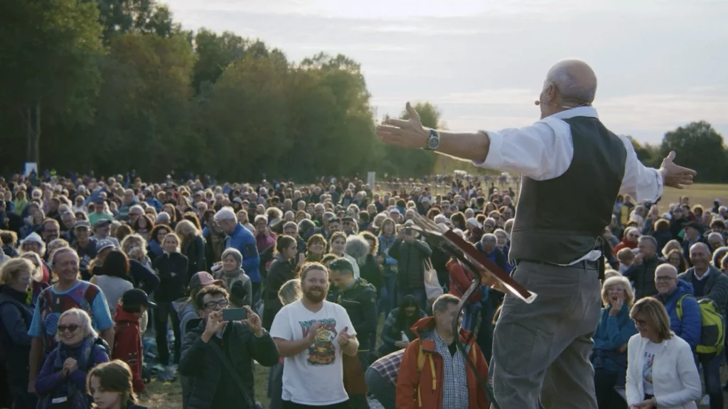 Possiamo considerare Mar de Molada come seguito di VajontS 23. Quella è una storia già scritta, accaduta 60 anni fa in una piccola valle di montagna. Oggi la fragilità del territorio veneto è legata allo smaltimento delle acque quando ce ne sono troppe e all’approvvigionamento delle acque quando ce ne sono poche. Le criticità legate al riscaldamento climatico, al consumo del suolo, allo spazio ridotto sono ormai evidenti. Il progetto teatrale è stato concepito come una carovana, che ha toccato alcuni luoghi significativi, fermandosi e allestendo spettacoli campestri in orario diurno (alla mattina in alta montagna e di pomeriggio nelle altre location). È partita dai piedi della Marmolada, sulle rive del torrente Pettorina (prati di Malga Ciapela a Rocca Pietore, Belluno), per scendere fino al punto in cui il Cordevole sta per buttarsi nel Piave, sotto la Certosa di Vedana (prati di San Gottardo, Sospirolo, Belluno). Poi più sotto seguendo il Piave, appena a monte delle Grave del Montello e vicino al ponte di Vidor (prati ae Barche, Pederobba, Treviso). E ancora più giù spingendosi sulla riva dell’Adriatico, nell’oasi naturalistica di Vallevecchia (Caorle, Venezia), detta anche Brussa, probabilmente l’ultimo pezzo di costa veneta agricola dove si legge ancora un paesaggio diverso da quello turistico. I luoghi toccati da questo itinerario diventano così simbolici. In un momento centrale nel documentario e a ridosso della seconda tappa, Paolini cammina nell’alveo del Cordevole, con pochissima acqua, e parla della tempesta Boris, un vasto sistema ciclonico che sul finire di settembre 2024 si è spostato dall’Europa nord-orientale alla nostra Penisola. Aggirando le Alpi e attingendo l’aria calda dell’Adriatico, la tempesta ha scaricato tutto sull’Emilia-Romagna, sopra Faenza, sul Lamone e i suoi affluenti. Tra il 17 e il 19 settembre 2024 sulla Romagna e sulla provincia di Bologna sono state osservate precipitazioni record con accumuli nelle 48 ore di oltre 300 mm sull’Appennino romagnolo e di oltre 200 mm sulla pianura e sulla costa. Guardando in macchina e interrogando così direttamente gli spettatori, Paolini si chiede come sia possibile parlare di fiumi senza considerare i disastri naturali in aumento. Nel 2024 sono stati registrati circa 2000 eventi climatici estremi (alluvioni, frane, ondate di calore, nubifragi, tornado, grandinate). In un altro passaggio toccante, sulle immagini delle montagne innevate, le parole di Paolini riportano al 3 luglio 2022 ed evocano il rumore infernale della slavina provocata dal distacco di un seracco sul ghiacciaio della Marmolada. 26000 tonnellate di materia sono cadute a 300 chilometri orari, travolgendo 20 alpinisti. 11 morti, 7 feriti, 1 sopravvissuto quasi illeso. Lo spettacolo va a toccare luoghi precisi della memoria, li evoca, sfiora corde emozionali condivise. Anche se nel luogo della prima tappa il ghiacciaio non è visibile, Paolini chiede a tutte le persone coinvolte nella messa in scena di sentire quel ghiaccio. La prima tappa si svolge tra il ghiacciaio della Marmolada e i Serrai di Sottoguda, dove nell’ottobre 2018 l’uragano Vaia ha travolto milioni di alberi. Segato afferma che oggi tutti noi abbiamo a disposizione le informazioni necessarie per avere una piena consapevolezza di quello che succede. Il problema è che magari non vogliamo avere questa consapevolezza perché abbiamo tante altre questioni quotidiane che si frappongono tra noi e tutto il resto. In un periodo così difficile la consapevolezza dei problemi non è condizione sufficiente a portarci ad una presa di coscienza proattiva. Anzi, spesso è una presa di coscienza passiva, che genera ulteriore distacco e frustrazione. Sappiamo le cose, sappiamo che vanno sempre peggio ma non sappiamo cosa fare. C’è anche chi propone delle soluzioni, degli interventi. Forse quello che può fare il cinema, il teatro, la cultura in generale è legare queste questioni proprio alla sfera emotiva, in modo da poter fare quel salto tra la consapevolezza e l’azione legandole ad uno stato d’animo, ad una forza, se vogliamo utopistica, ma necessaria.