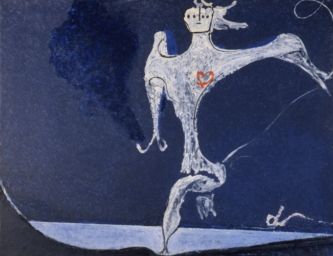 Negli anni ’40 e ’50 la sua pittura migra in personaggi fantastici e figure solitarie, abitate da segni arcani e misteriosi: l’Olandese volante, l’Amalassunta, gli Angeli ribelli, i Missili lunari.