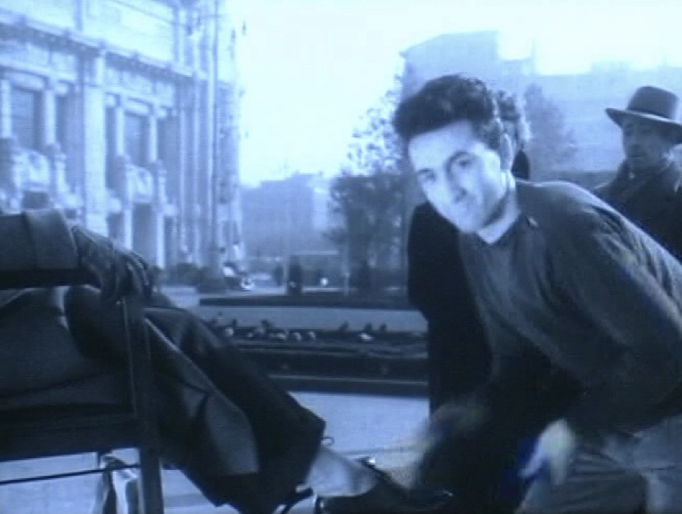 Nel filmato è ben riconoscibile il luogo delle riprese: siamo davanti alla stazione di Milano. E vediamo all’opera dei lustrascarpe che offrono i loro servigi ai viaggiatori in transito. Il mestiere di lustrascarpe era stato reso famoso da Sciuscià (1946), titolo di un film di De Sica che altro non era che un adattamento alla parlata napoletana dell’inglese shoe-shine (to shine = lucidare e shoes = scarpe). De Sica con quel film aveva conquistato un Oscar per il migliore film straniero. E Giachino nel suo filmato ripropone la figura di un piccolo lustrascarpe che, a differenza del poetico eroe di De Sica, non sogna fughe su un cavallo bianco, ma si dà da fare per sgominare la concorrenza quanto mai agguerrita. E ci riesce perfettamente facendo ricorso al lucido per scarpe prodotto dalla Fila e gelosamente custodito nella cassetta degli attrezzi.