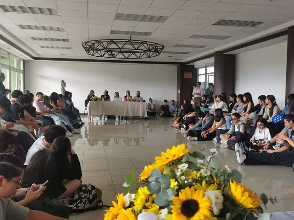 L’inaugurazione del Festival nel Colegio de arquitectos e ingenieros: gli studenti e i poeti invitati.