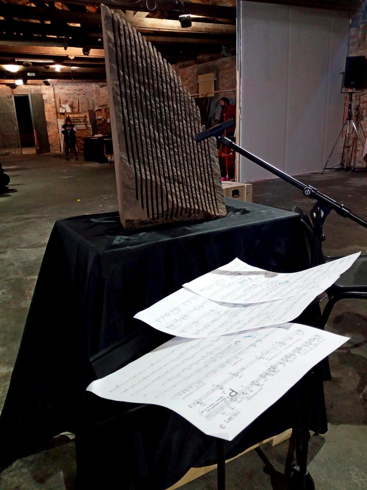 Il connubio che imprescindibilmente lega la dimensione del suono a quella della scultura ha avuto inizio dal momento in cui le incisioni hanno iniziato ad insinuarsi nella pietra con l’intenzione di ricavarne melodiose sonorità.