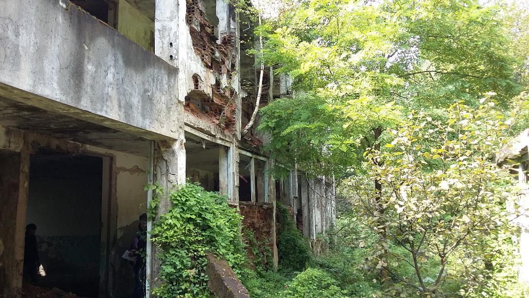 Poco prima delle terme, l’albergo Domavia si staglia contro un grigio fondale di un cielo arrugginito, facendo tutt’uno col paesaggio. E pensare che le terme, prima del conflitto, erano una fonte di richiamo nazionale e costituivano l’asse portante dell’intera economia della zona, un territorio che costeggia il fiume Drina (ricordato dal premio Nobel Ivo Andrić), ricco di miniere di argento, zinco e piombo.