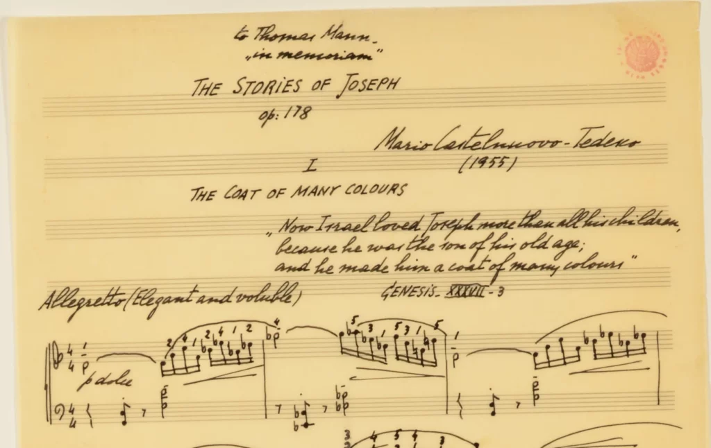 « Anche nei miei dischi precedenti dedicati ad Aldo Finzi ho inserito pezzi pianistici insieme a quelli cameristici o vocali, perché il focus fosse non tanto sull’interprete, quanto sul compositore e su brani di raro ascolto. Anche in questo caso sono tutte prime registrazioni assolute, legate all’assidua frequentazione di Castelnuovo-Tedesco con la letteratura tedesca e inglese; inoltre, è stato un modo per accostare i due mondi e le due vite del compositore: le liriche sono tutte degli anni Venti, The stories of Joseph, invece, appartengono al periodo americano, sono del 1955 »