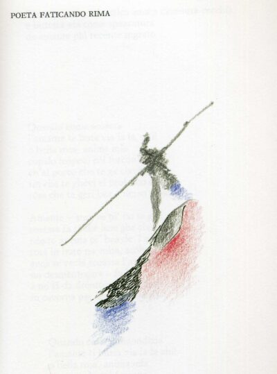 11. G. Scabia, Canti del guardare lontano, Torino, Einaudi, 2012, con disegni dell’autore, a cominciare da quello di copertina, replicato a p. 151 e intitolato, quasi una divisa araldica: Poeta faticando rima, in cui il poeta è un equilibrista (o un saltatore) con una lunga pertica su uno scivoloso pendio.