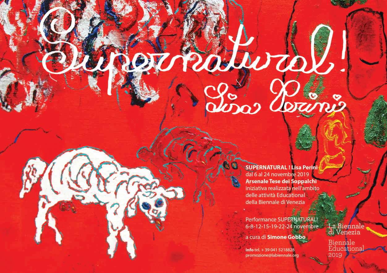 SUPERNATURAL! è il titolo di un’opera in forma di disegno-scrittura di Lisa Perini. Si tratta di un progetto specifico realizzato su invito della Biennale Arte 2019 di Venezia. Il progetto prevede il coinvolgimento degli studenti delle scuole venete, che avranno la possibilità di interagire con l’artista, grazie alle perfomance all’interno degli spazi dell’Arsenale.