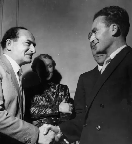 Salvatore Quasimodo si congratula con Andrea Zanzotto vincitore del Premio San Babila – Inediti, 1950 (© Patellani / Archivio Germana Marucelli)