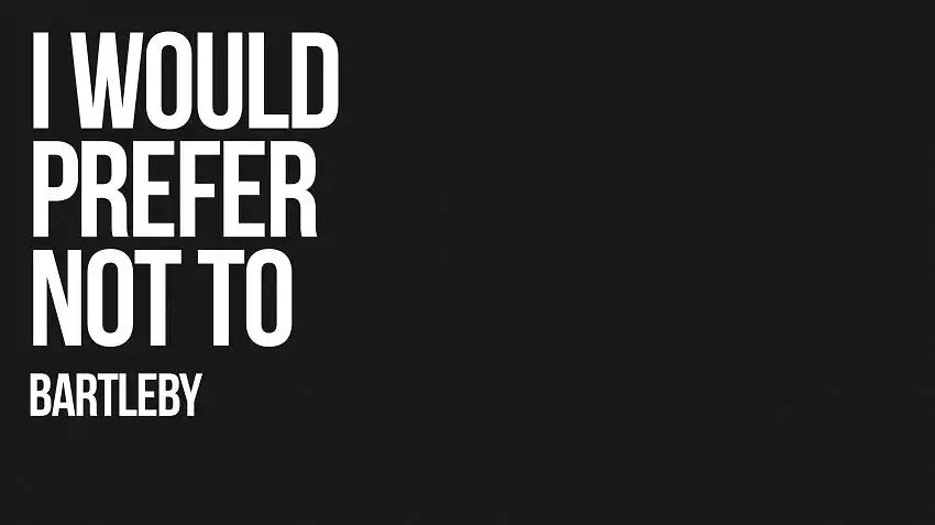 Le domande si affollano, quando la situazione cambia radicalmente. Il giorno seguente l’avvocato trova Bartleby insolitamente privo di occupazioni. Alla domanda sulla ragione per cui non stia ricopiando documenti legali, Bartleby enigmaticamente risponde, con l’usuale apatia: “Non capite da voi la ragione?” (